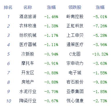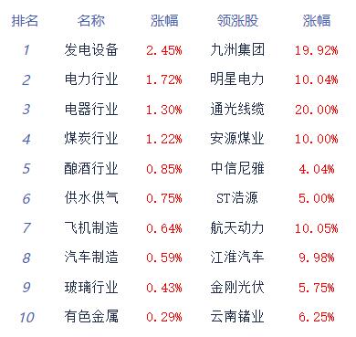 板块方面,通信设备、军工电子、电网设备、电力等涨幅居前,医疗服务、养殖业、旅游及酒店、医药商业等跌幅居前。
