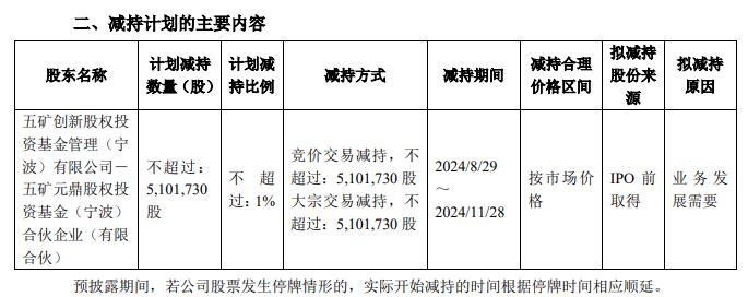 中国经济网北京8月8日讯 芳源股份(688148.SH)昨晚发布关于持股5%以上股东减持股份计划的公告。芳源股份于2024年8月7日收到股东五矿元鼎股权投资基金(宁波)合伙企业(有限合伙)(简称“五矿元鼎”)出具的《关于减持股份计划的告知函》,因业务发展需要,公司股东五矿元鼎计划根据市场价格,通过集中竞价或大宗交易的方式减持其持有的公司股份合计不超过5,101,730股(不超过公司总股本的1%),减持期间为自公司披露股份减持计划公告之日起15个交易日后的3个月内。