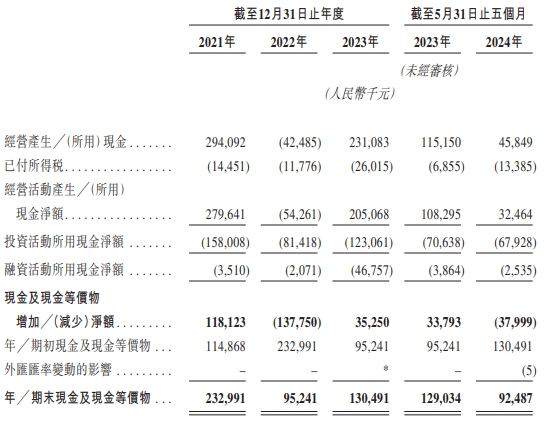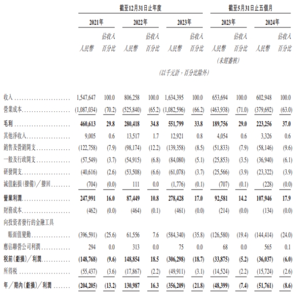2021年至2023年及2024年前5个月,手回科技收入分别为15.48亿元、8.06亿元、16.34亿元、6.03亿元,年内利润分别为-2.04亿元、1.31亿元、-3.56亿元、-5176.1万元,经调整后的净利润(非香港财务报告准则计量)分别为1.95亿元、7502.3万元、2.53亿元、1.04亿元,经营活动产生现金净额分别为2.94亿元、-4248.5万元、2.31亿元、4584.9万元。