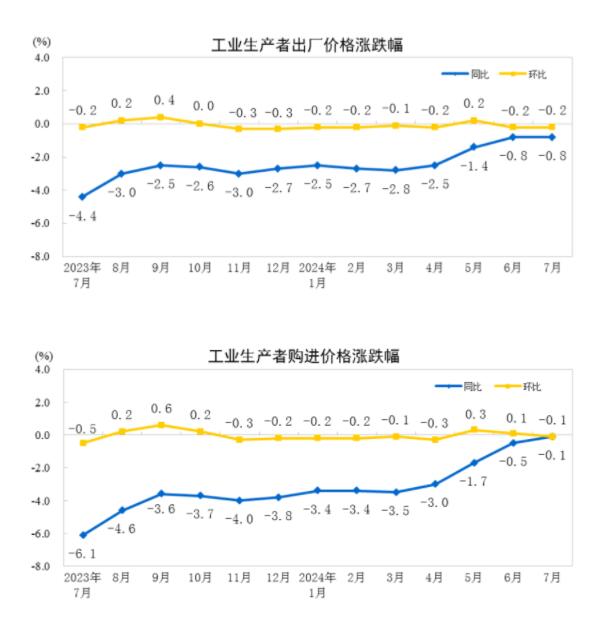 2024年7月工业生产者价格主要数据