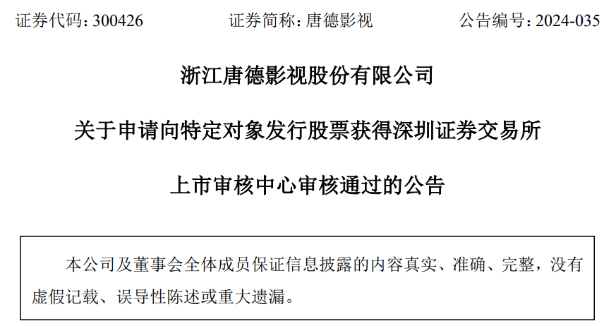 唐德影视定增募不超4.13亿获深交所通过 光大证券建功