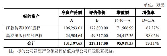 根据中同华评估出具的《江教传媒评估报告》《高校出版社评估报告》,采用收益法对标的资产进行评估并作为评估结论。