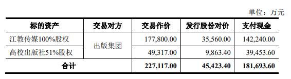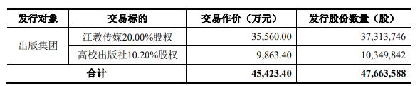 本次发行股份及支付现金的对象为出版集团。公司拟向出版集团发行股份用于支付本次交易中江教传媒20.00%股权和高校出版社10.20%股权的交易作价。最终发行数量以上市公司股东大会审议通过、经上交所审核通过并经中国证监会予以注册的数量为准。