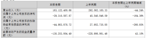 2024年第一季度,公司实现营业收入1.63亿元,同比下降44.24%;归母净利润-2931.06万元,上年同期为4554.00万元;扣非净利润-4498.39万元,上年同期为2795.27万元;经营活动产生的现金流量净额为-1.30亿元,上年同期为-2.29亿元。