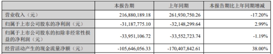 吉大正元上周五晚间披露的2024年半年度报告显示,公司上半年实现营业收入2.17亿元,同比下降17.20%;归属于上市公司股东的净利润-3118.78万元,上年同期为-3214.83万元;归属于上市公司股东的扣除非经常性损益的净利润-3395.11万元,上年同期为-3355.27万元;经营活动产生的现金流量净额为-1.06亿元,上年同期为-1.70亿元。