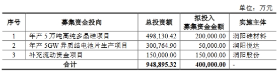 2023年8月2日,证监会同意润阳股份首次公开发行股票的注册申请。公司原计划在创业板上市,首发募资40亿元,其中拟投入20亿元用于年产5万吨高纯多晶硅项目,拟投入5亿元用于年产5GW异质结电池片生产项目,拟投入15亿元用于补充流动资金。