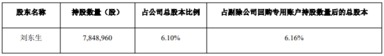 刘东生持有公司股份7,848,960股(占公司总股本的6.10%,占剔除公司回购专用账户持股数量1,267,300股后的总股本的6.16%),为公司持股5%以上股东,上述股份为公司首次公开发行前取得,该部分股份于2024年7月8日解除限售上市流通。