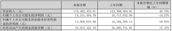 2024年第一季度,致尚科技实现营业收入1.74亿元,同比增长40.70%;归属于上市公司股东的净利润1433.15万元,同比下降14.27%;归属于上市公司股东的扣除非经常性损益的净利润1301.00万元,同比下降19.61%;经营活动产生的现金流量净额3601.53万元,同比增长17.37%。