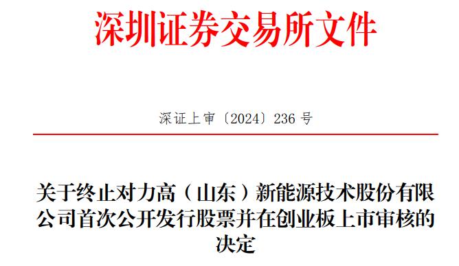 中国经济网北京8月20日讯 深交所网站昨日发布关于终止对力高(山东)新能源技术股份有限公司(简称“力高新能”)首次公开发行股票并在创业板上市审核的决定。