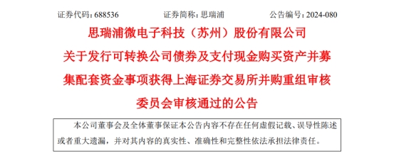 中国经济网北京8月26日讯 思瑞浦(688536.SH)8月24日发布了关于发行可转换公司债券及支付现金购买资产并募集配套资金事项获得上海证券交易所并购重组审核委员会审核通过的公告。上交所重组委于2024年8月23日召开2024年第5次并购重组审核委员会审议会议,对公司本次交易的申请进行了审议。根据上交所重组委发布的《上海证券交易所并购重组审核委员会2024年第5次审议会议结果公告》,本次会议的审议结果为:本次交易符合重组条件和信息披露要求。