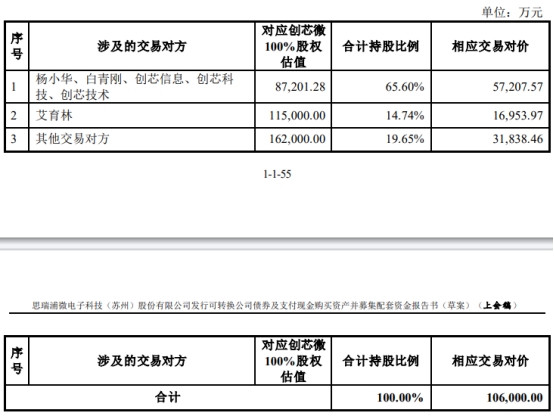 2024年8月16日,思瑞浦发布的发行可转换公司债券及支付现金购买资产并募集配套资金报告书(草案)(上会稿)显示,本次交易方案包括发行可转换公司债券及支付现金购买资产、募集配套资金两部分。关于发行可转换公司债券及支付现金购买资产,公司拟通过发行可转换公司债券以及支付现金的方式购买其分别持有的创芯微100.00%股权。本次交易完成后,创芯微将成为公司的全资子公司。