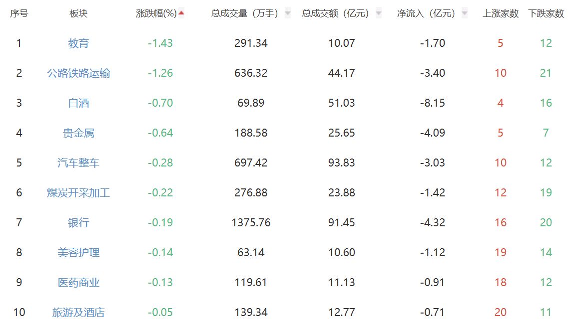 A股市场板块涨跌幅排行