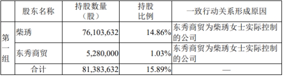 柴琇直接持有公司76,103,632股股份,占公司股份总数的14.86%;柴琇之一致行动人吉林省东秀商贸有限公司(以下简称“东秀商贸”)持有公司5,280,000股股份,占公司股份总数的1.03%;柴琇及东秀商贸合计持有公司81,383,632股股份,占公司股份总数的15.89%。