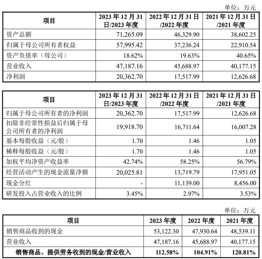 2021年至2023年,小方制药的营业收入分别为40,177.15万元、45,688.97万元和47,187.16万元;净利润/归属于母公司所有者的净利润分别为12,626.68万元、17,517.99万元和20,362.70万元;扣除非经常性损益后归属于母公司所有者的净利润分别为16,007.28万元、16,711.64万元和19,918.70万元。