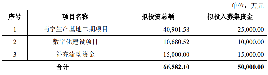 葫芦娃本次扣除发行费用后募集资金净额原拟投资于南宁生产基地二期项目、数字化建设项目、补充流动资金。