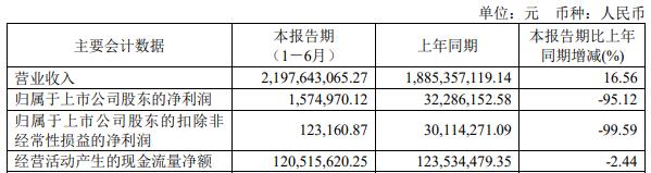 聚石化学2024年半年度报告显示,2024年上半年,聚石化学实现营业收入21.98亿元,同比增长16.56%;归属于上市公司股东的净利润157.50万元,同比下滑95.12%;归属于上市公司股东的扣除非经常性损益的净利润12.32万元,同比下滑99.59%;经营活动产生的现金流量净额为1.21亿元,同比下滑2.44%。