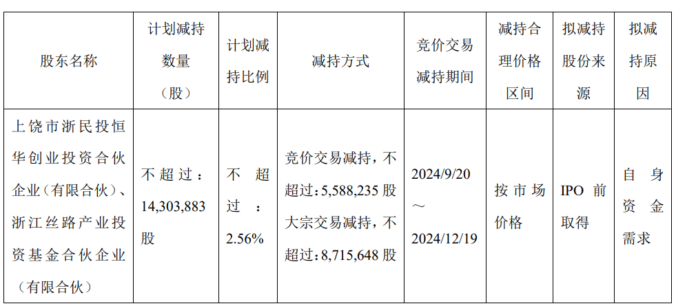 此前国邦医药在2024年4月18日披露的公告显示,浙民投恒华、丝路基金因自身资金需求,计划通过集中竞价及大宗交易方式减持其持有的公司股份合计不超过16,764,705股,减持比例不超过公司总股本的3%。