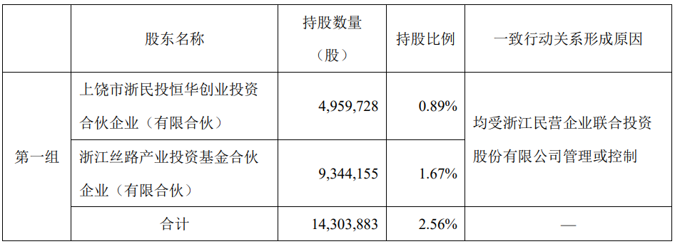 截至公告披露日,浙民投恒华、丝路基金分别持有国邦医药无限售流通股份4,959,728股、9,344,155股,占公司总股本的0.89%、1.67%。浙民投恒华、丝路基金为一致行动人,合计持有公司无限售流通股14,303,883股,占公司总股本的2.56%。上述股份已于2023年2月2日解除限售并上市流通。