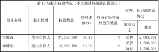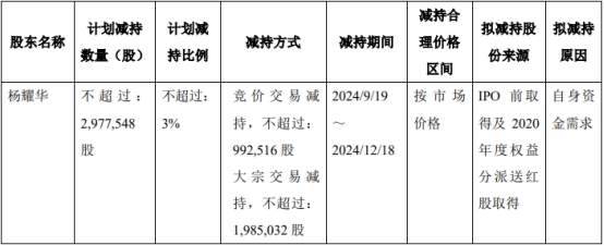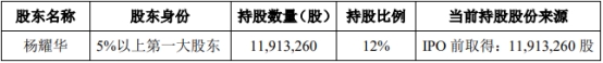 截至公告披露日,杨耀华持有公司股份11,913,260股,占公司总股本的12%。上述股份为公司首次公开发行股票前持有及2020年度权益分派送红股取得的股份,已于2022年2月23日起上市流通。