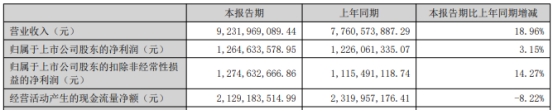 上半年扣非净利增14.27% 坚守高质量可持续发展