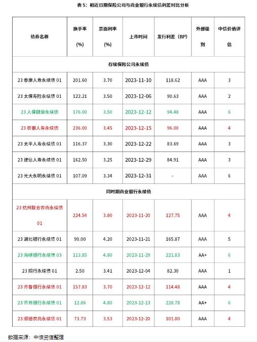 具体投资方面,考虑到保险永续债在会计上计入权益工具,保险资金在投资时会占用权益投资额度,并且清偿顺序劣后,因此就需要在永续债发行定价上提供条款溢价。另外,考虑到保险行业永续债发行时间较短,预计也会存在一定流动性溢价。因此,当前发行保险永续债企业均为中债价值评估6分以上,信用品质较高,在当前行业溢价、条款溢价、流动性溢价等均存在的背景下,越早投资保险永续债带来的溢价收益越高。(来源:中债资信 投资服务团队)
