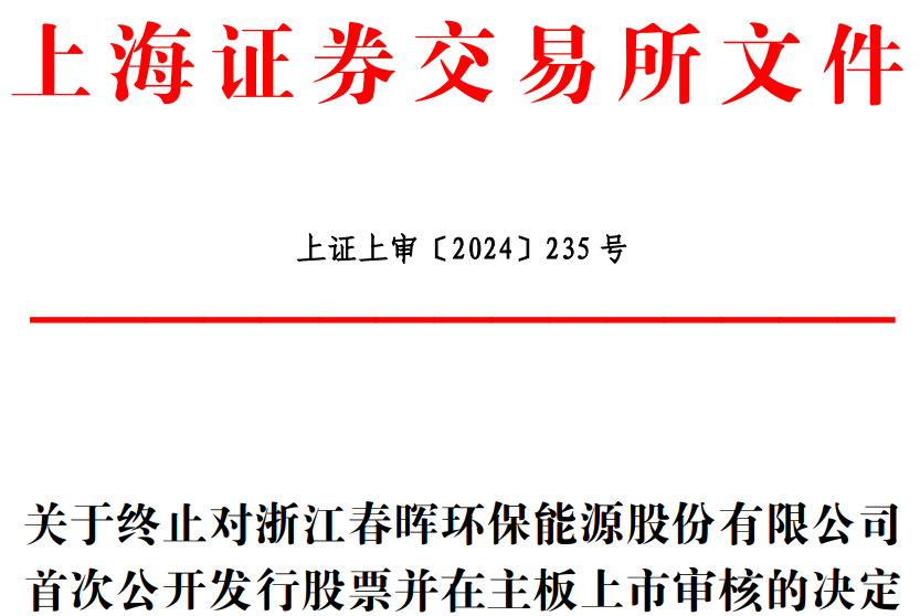 中国经济网北京8月30日讯 上交所网站昨日披露关于终止对浙江春晖环保能源股份有限公司(简称“春晖能源”)首次公开发行股票并在主板上市审核的决定。
