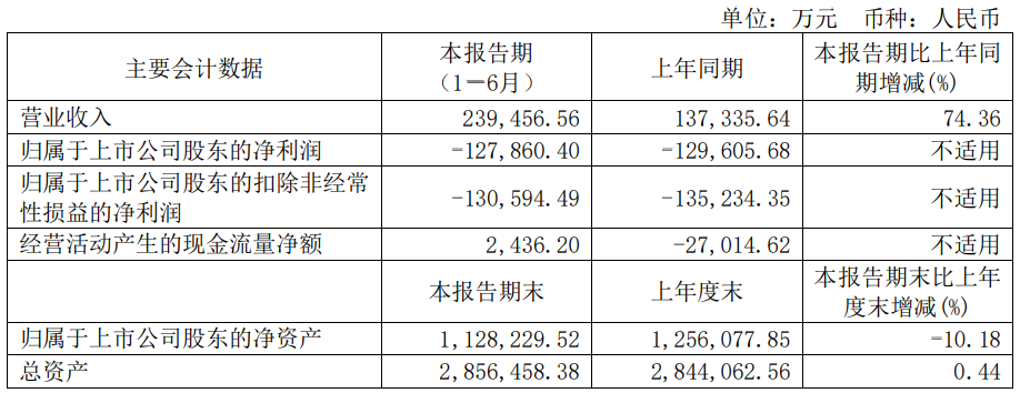 中国经济网北京8月30日讯 和辉光电(688538.SH)昨日披露2024年半年度报告。2024年上半年,公司实现营业收入23.95亿元,同比增长74.36%;归属于上市公司股东的净利润-12.79亿元,上年同期为-12.96亿元;归属于上市公司股东的扣非净利润-13.06亿元,上年同期为-13.52亿元;经营活动产生的现金流量净额为2436.20万元,上年同期为-2.70亿元。