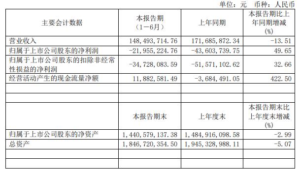 中国经济网北京9月5日讯 方邦股份(688020.SH)近日发布2024年半年度报告显示,2024年上半年,方邦股份实现营业收入1.48亿元,同比下滑13.51%;归属于上市公司股东的净利润-2195.52万元,上年同期为-4360.37万元;归属于上市公司股东的扣除非经常性损益的净利润-3472.81万元,上年同期为-5157.11万元;经营活动产生的现金流量净额为1188.26万元。