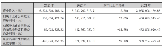 据德福科技2023年年度报告,2023年,公司实现营业收入65.31亿元,同比增长2.36%;归属于上市公司股东的净利润为1.33亿元,同比减少73.65%;归属于上市公司股东的扣除非经常性损益的净利润为6903.36万元,同比减少84.58%。