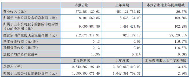 博杰股份近日发布2024年半年度报告显示,2024年上半年,博杰股份实现营业收入5.72亿元,同比增长26.57%;归属于上市公司股东的净利润1810.16万元,同比增长109.60%;归属于上市公司股东的扣除非经常性损益的净利润909.59万元,同比增长102.25%;经营活动产生的现金流量净额为-2.13亿元。