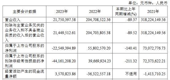 2023年年度报告显示,去年,*ST导航营业收入2175.04万元,同比减少89.37%;归属于上市公司股东的净利润-2254.94万元,上年同期为5580.26万元;归属于上市公司股东的扣除非经常性损益的净利润-4416.12万元,上年同期为3966.99万元;经营活动产生的现金流量净额357.08万元,上年同期为-3632.26万元。
