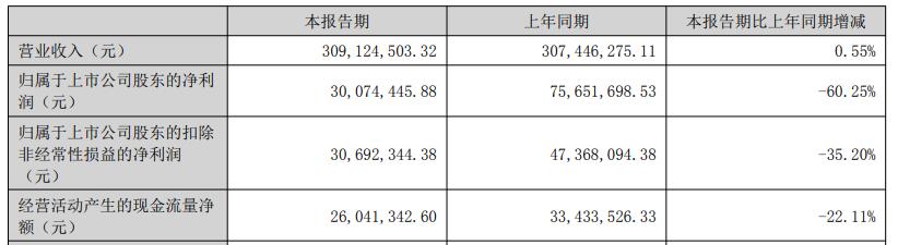 中国经济网北京9月11日讯 康力源(301287.SZ)近日发布的2024年半年度报告显示,2024年上半年,公司实现营业收入3.09亿元,同比增长0.55%;归属于上市公司股东的净利润3007.44万元,同比下降60.25%;归属于上市公司股东的扣除非经常性损益的净利润3069.23万元,同比下降35.20%;经营活动产生的现金流量净额为2604.13万元,同比下降22.11%。