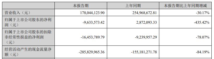 中国经济网北京9月12日讯 宏景科技(301396.SZ)近日发布的2024年半年度报告显示,2024年上半年,公司实现营业收入1.78亿元,同比下降30.17%;归属于上市公司股东的净利润-963.36万元,上年同期287.21万元;归属于上市公司股东的扣除非经常性损益的净利润-1645.38万元,上年同期-924万元;经营活动产生的现金流量净额为-2.86亿元,上年同期为-1.55亿元。