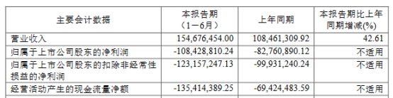 中国经济网北京9月13日讯 裕太微(688515.SH)近日披露2024年半年度报告。2024年上半年,公司实现营业收入1.55亿元,同比增长42.61%;归母净利润为-1.08亿元,上年同期为-8276.09万元;扣非净利润为-1.23亿元,上年同期为-9993.12万元;经营活动产生的现金流量净额为-1.35亿元,上年同期为-6942.45万元。