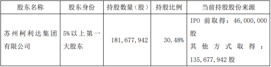 截至公告披露日,公司控股股东柯利达集团持有公司股份181,677,942股,占公司总股本的30.48%,全部为无限售流通股,所持股份来源为公司首次公开发行前持有及资本公积转增股本。