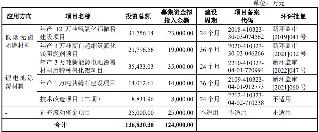 中超股份本次原拟在深交所创业板公开发行股份数量不超过1,870.00万股,公司本次公开发行股票数量占发行后总股本的比例不低于25.00%,公司股东本次不公开发售股份。公司原拟募集资金124,000.00万元,用于年产12万吨氢氧化铝微粉建设项目、年产3万吨高白超细氢氧化镁阻燃剂项目、年产3万吨新能源电池涂覆材料用特种氧化铝项目、年产1万吨勃姆石建设项目、技术改造项目(二期)、补充流动资金项目。