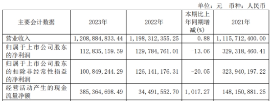 2023年,天德钰实现营业收入12.09亿元,同比增长0.88%;归属于上市公司股东的净利润1.13亿元,同比减少13.06%;归属于上市公司股东的扣除非经常性损益的净利润1.01亿元,同比减少20.05%;经营活动产生的现金流量净额3.85亿元,同比增长1,017.27%。