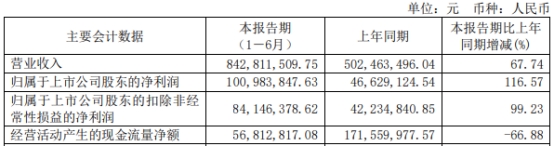 2024年上半年,天德钰实现营业收入8.43亿元,同比增长67.74%;归属于上市公司股东的净利润1.01亿元,同比增长116.57%;归属于上市公司股东的扣除非经常性损益的净利润0.84亿元,同比增长99.23%;经营活动产生的现金流量净额0.57亿元,同比下降66.88%。