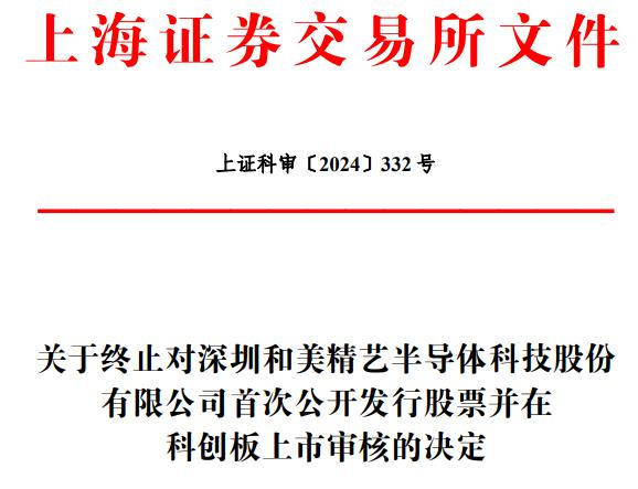 中国经济网北京9月26日讯 上交所网站日前公布关于终止对深圳和美精艺半导体科技股份有限公司(简称“和美精艺”)首次公开发行股票并在科创板上市审核的决定。