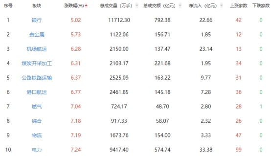 A股市场板块涨跌幅排行