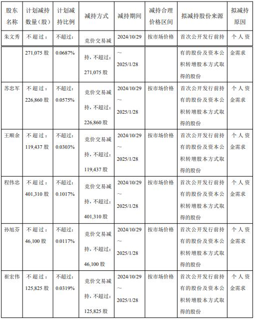 自公告发布之日起15个交易日后3个月内,董事、总经理朱文秀拟通过集中竞价方式减持其所持有的公司无限售条件流通股合计不超过271,075股,约占公司总股本的0.0687%。