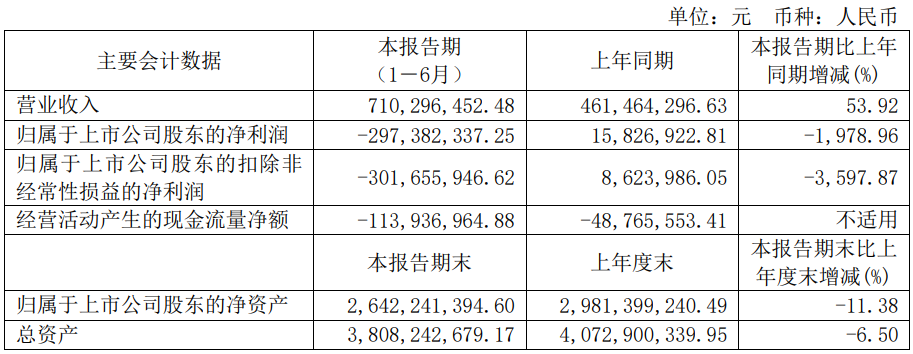 2024年上半年,帕瓦股份实现营业收入7.10亿元,同比增加53.92%;归属于上市公司股东的净利润-2.97亿元,上年同期为1582.69万元;归属于上市公司股东的扣除非经常性损益的净利润-3.02亿元,上年同期为862.40万元;经营活动产生的现金流量净额-1.14亿元,上年同期为-4876.56万元。