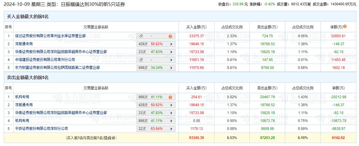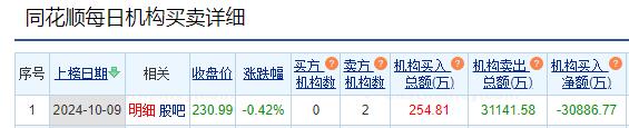 龙虎榜数据显示,卖出同花顺金额最大的前五名中,有2家机构专用席位。经统计,机构席位今日卖出同花顺净额为30886.77万元。