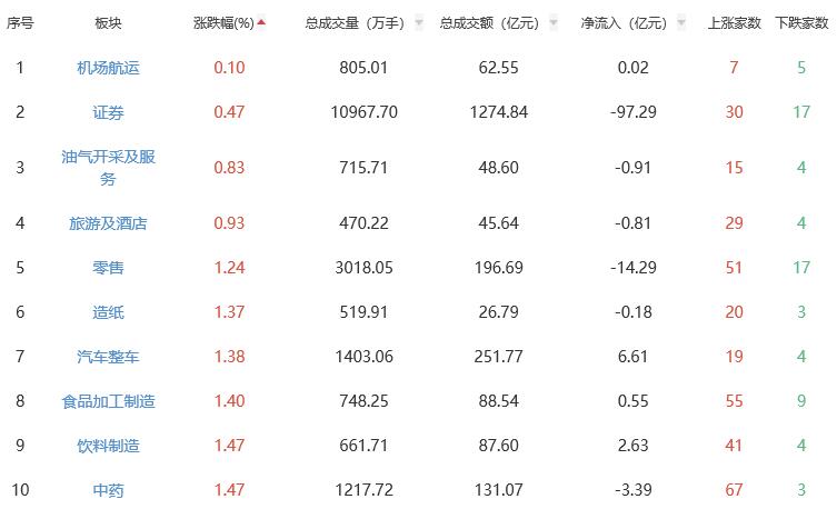 A股市场板块涨跌幅排行