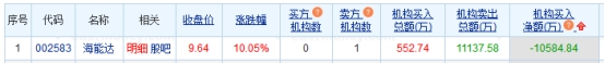 海能达涨停 三个交易日机构净卖出1.1亿元