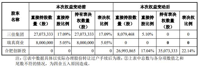 股份交割后,三佳集团仍直接持有文一科技8,079,468股股份,占文一科技总股本的5.10%。三佳集团同意将其在转让股份交割后所持有的全部5.10%文一科技股份对应的表决权、提名和提案权、参会权以及除收益权和股份转让权等财产性权利之外的其他权利不可撤销地委托给合肥创新投行使。