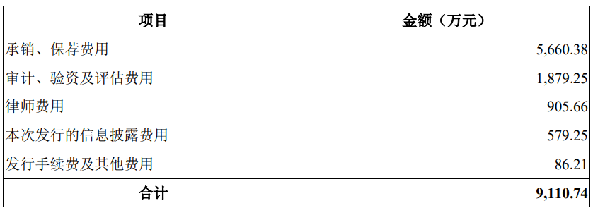 上大股份本次发行费用(不含增值税)总额为9,110.74万元,其中承销、保荐费用5,660.38万元。