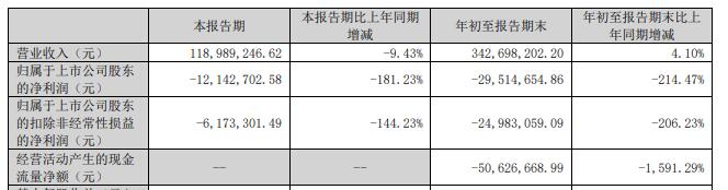 中国经济网北京10月21日讯 蒙泰高新(300876.SZ)近日发布的2024年三季度报告显示,2024年前三季度,实现营业收入3.43亿元,同比增长4.10%;归属于上市公司股东的净利润-2951.47万元,同比下降214.47%;归属于上市公司股东的扣除非经常性损益的净利润-2498.31万元,同比下降206.23%;经营活动产生的现金流量净额-5062.67万元,同比下降1591.29%。