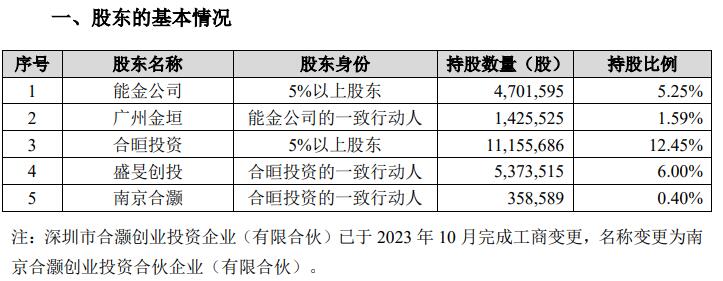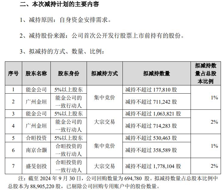 合计持有公司股份6,127,120股(占公司总股本比例6.84%)的股东能金公司及其一致行动人广州金垣计划在自减持计划公告之日起15个交易日后的3个月内以集中竞价方式或大宗交易方式减持公司股份累计不超过2,667,156股,占公司总股本比例3%(总股本已剔除公司回购专用账户中的股份数量,下同)。