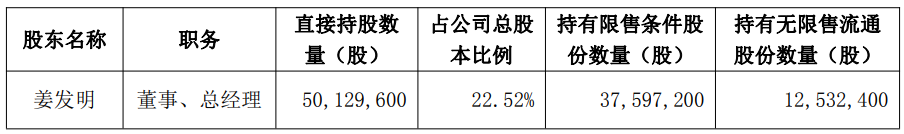 截至公告披露日,姜发明直接持有公司股份50,129,600股,占公司总股本比例22.52%,任公司董事、总经理。姜发明通过深圳市南极光管理咨询合伙企业(有限合伙)(简称“南极光管理”)、深圳市奥斯曼咨询管理合伙企业(有限合伙)(简称“奥斯曼”)间接持有公司股份5,484,768股,占公司总股本比例2.46%。